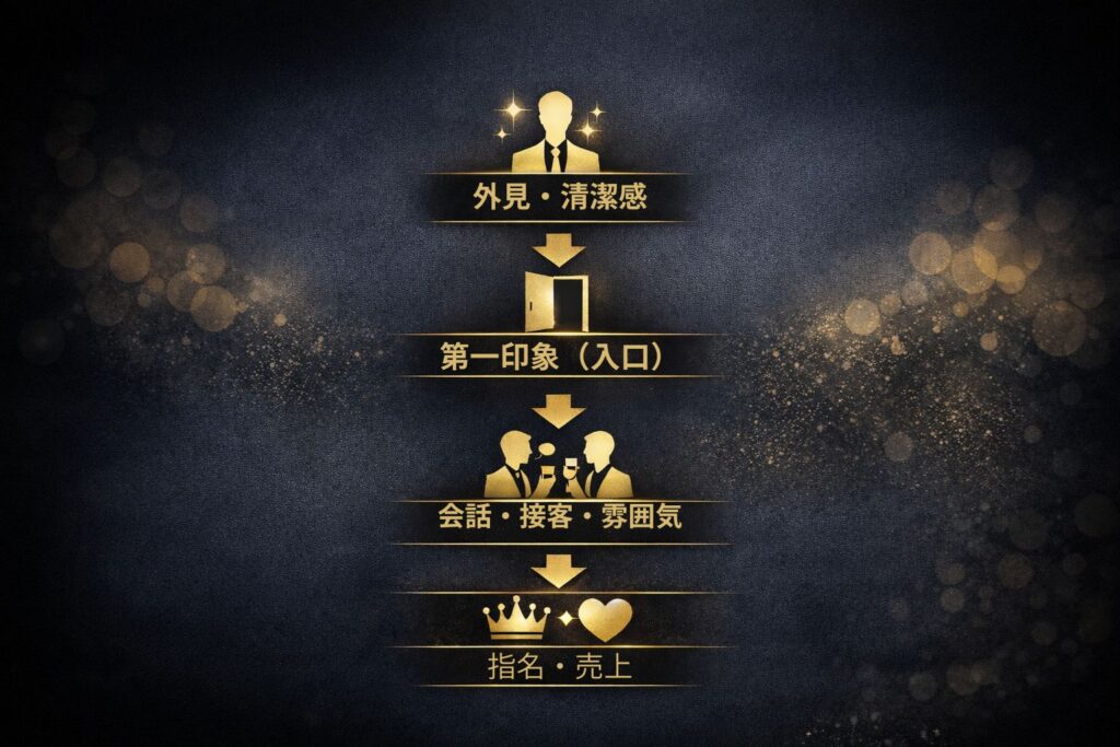 | 通い始めてから | 人柄・対応力 | 「この人を応援したいか」 | 指名が安定する |