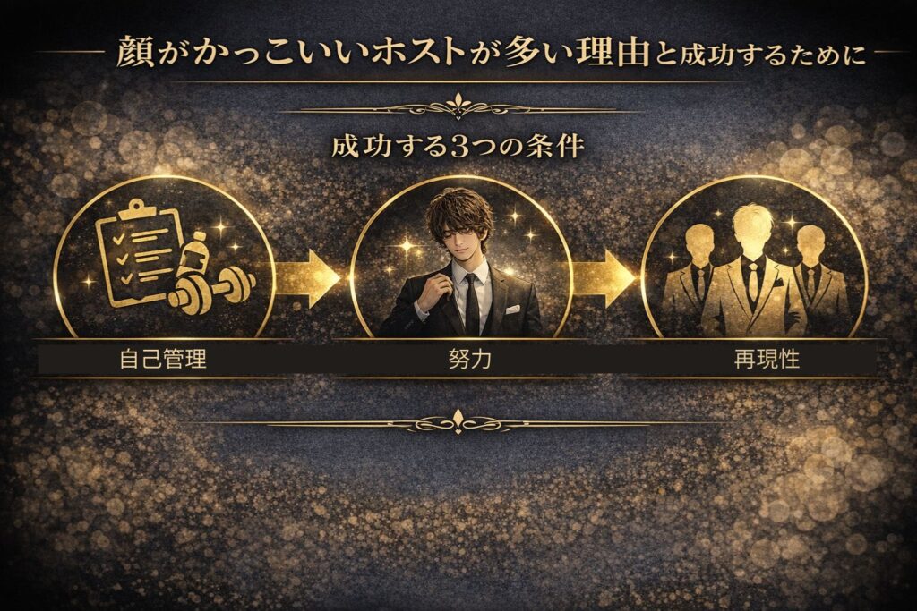 顔がカッコいいホストが多いのは、ホスト=イケメンというイメージがあり、お客様もそれを期待してきているということです。なので見た目がいいというのは、お客様が求める最低限のニーズでさらにトークスキルなどの接客術が必要になってきます。