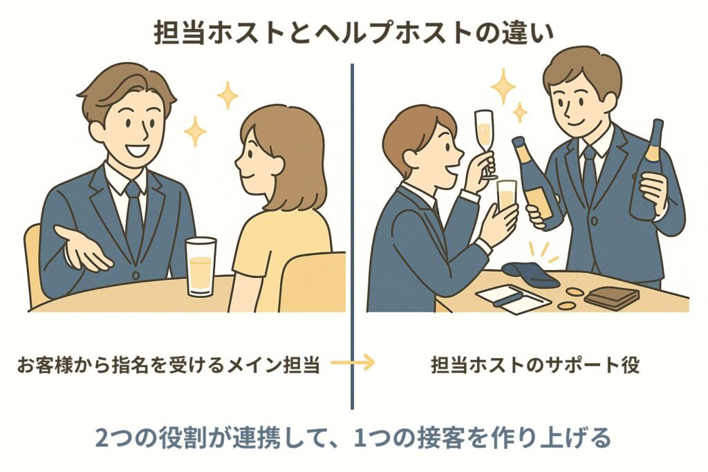 ホストの仕事においての役割を大きく2つにわけると【担当のホスト】と【ヘルプのホスト】がいます。